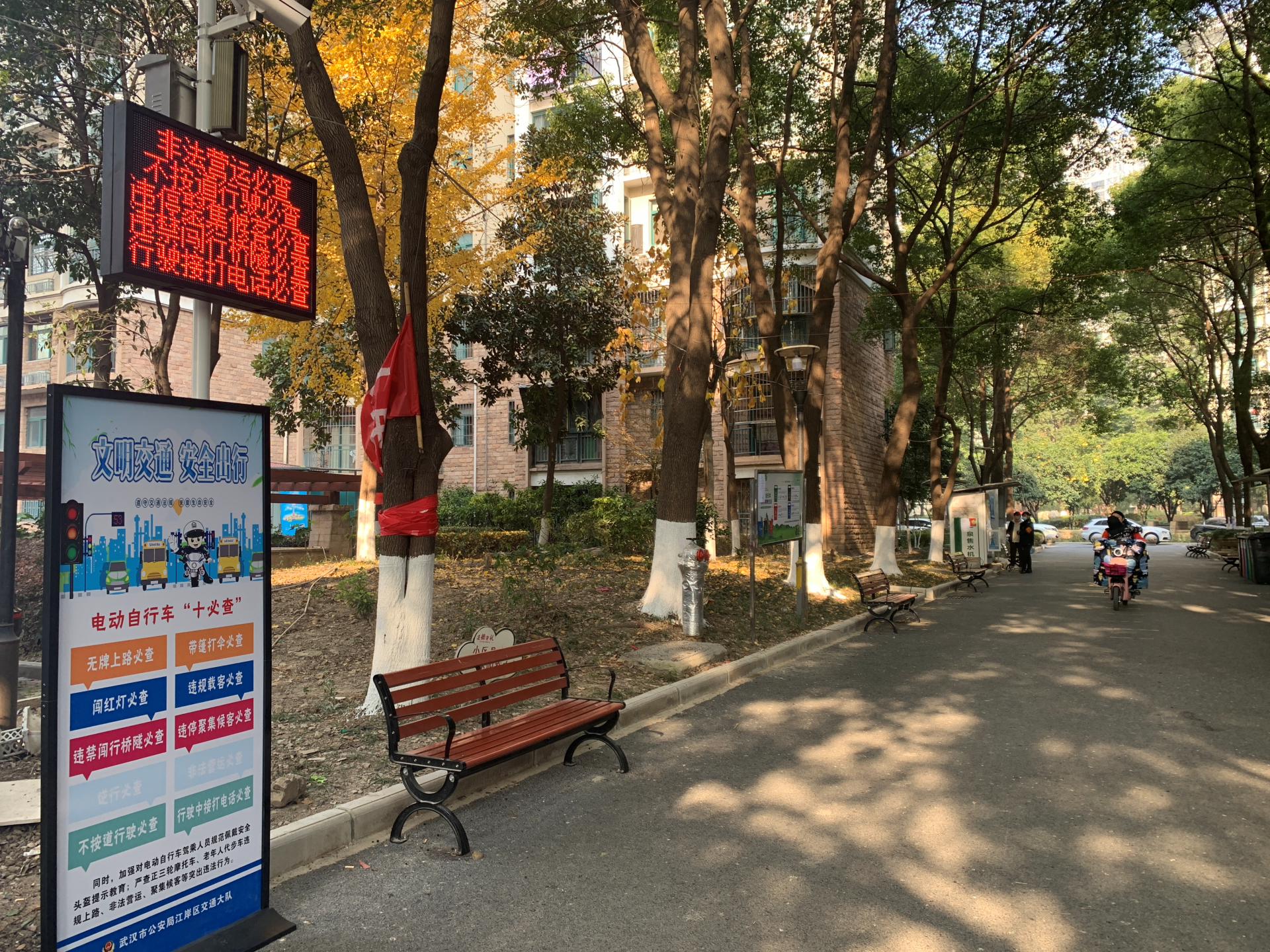 2021年,武汉市电动自行车上牌数同比上一年增长迅猛,江岸区交通大队整合警力资源,综合施策、创新破题,充分发挥“1+N”交通治理模式全覆盖的机制优势,全力开辟电动自行车整治社区主阵地。武汉市塔子湖中星社区现有居民8300人,电动自行车驾驶人占居民人数四成,进出社区的电动自行车日均流量达7500辆次。“电动自行车违法提示系统”安装后,吸引了不少社区群众驻足观望。