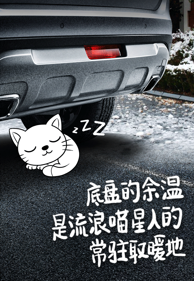 当寒风瑟瑟,猫咪等小动物会躲进车底,借着发动机的余温度过漫漫长夜。柔软的身体,让 TA 们能够轻松进入任何缝隙。
