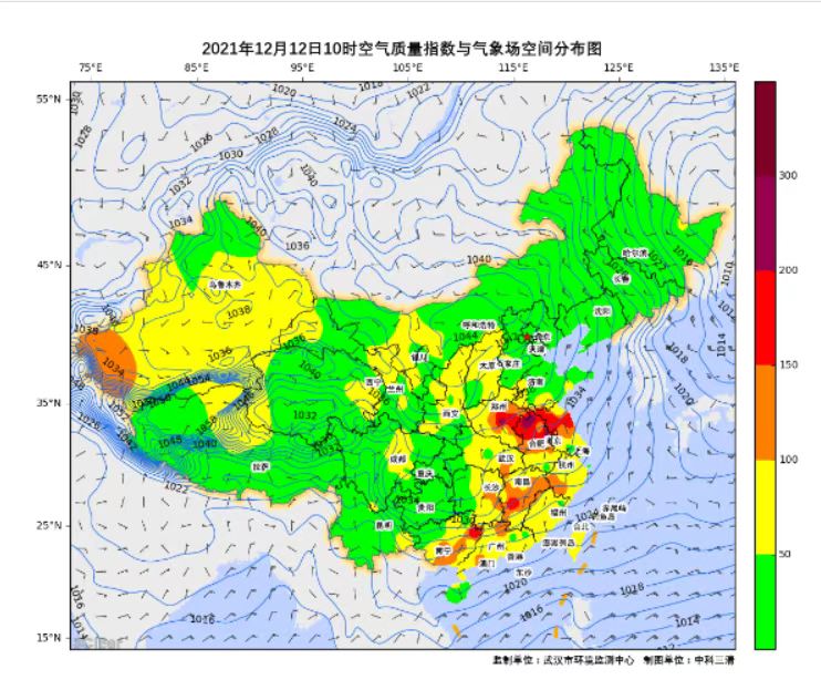 12日截至10时,武汉市空气质量指数为110,轻度污染,首要污染物为PM2.5。周边地区河南、江苏、安徽、湖南、江西等地部分城市为轻度到重度污染,首要污染物为PM2.5。省内武汉、鄂州、咸宁为轻度污染,其他城市空气质量均为优良,首要污染物为PM2.5。