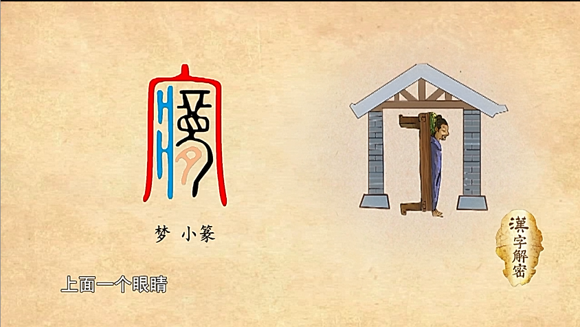 真正的梦字,上面是一个房子,就是宝盖头。下面左部分是半边木,也就是一张横置的床,右边就是表示不明的梦字。这个字的意思就是人睡着以后,在做梦,梦里有所言有所想。由于这个字形笔画太多,就借用表示不明的梦来表示做梦的梦。(主讲人 万献初 武汉大学文学院 教授)