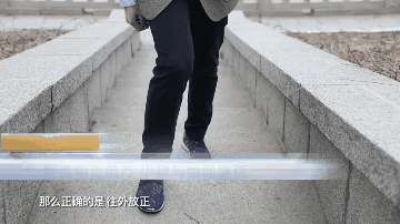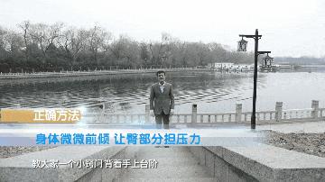 身体微微前倾,臀部用力。教大家一个小窍门,背着手上台阶,身体自然就向前倾了。这个时候增加了屈髋的角度,让臀部的肌肉更加发力了,就给膝盖减轻压力了。