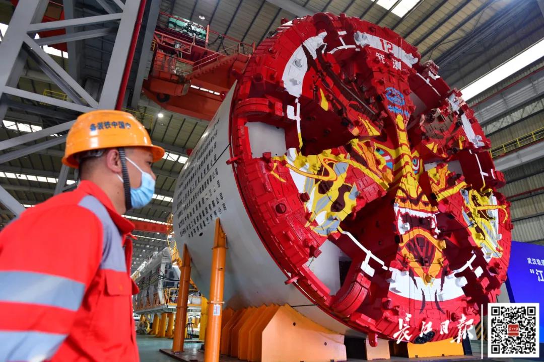 12月15日,武汉市江夏区中铁工程装备集团武汉基地,“江城先锋号”国产超大直径盾构机正式下线