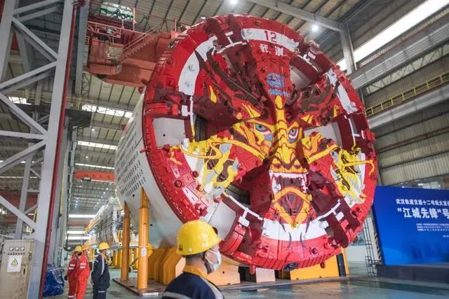 设备整机重达2900吨,总长约105米,是名副其实的“基建蛟龙”;且“力大无穷”,总功率约7000千瓦,与和谐号动车组的总功率相当,整机推力约16000吨,额定扭矩为22000千牛米,开挖断面是常规地铁盾构机的4倍。下线后,盾构机即将进行为期一个多月的拆卸装车,运往相隔大约30公里之外的武汉地铁12号线国博中心南站施工现场,进入穿江盾构施工的始发准备阶段。12号线由中铁开发投资集团有限公司作为社会资本方与政府方共同投资建设,中铁开投武汉轨道交通十二号线工程指挥部副指挥长陈礼博介绍:“江城先锋号”盾构机将用于地铁12号线穿越长江的国博中心南-凌吴村站区间施工,区间为全线控制性工程,隧道全长3.37公里,采用单洞双线布置形式,区间穿越长江江底复杂的地质层江底,有硬岩层、软岩层、软土层、泥沙地质等,其中泥岩长度更是达到1.8公里以上,是世界性的施工难题,为此该盾构机针对武汉江底施工环境进行了针对性设计,为12号线建设奠定坚实基础。