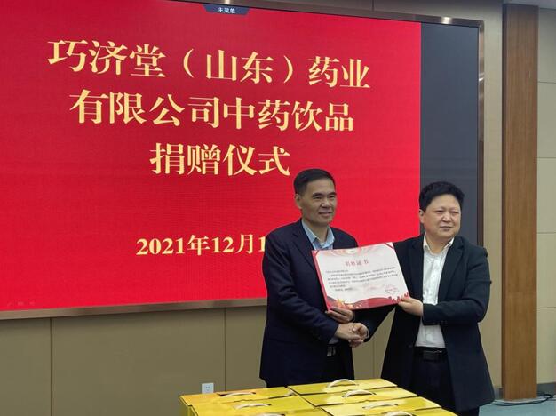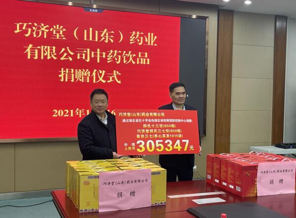 据了解,此次捐赠的物资包括650箱药食同源巧济堂邵氏三七饮、巧济堂邵氏十三饮及1015袋抗病毒景田三七(养心菜茶)。捐赠仪式上,爱心捐赠企业代表、巧济堂药业有限公司董事长邵建波代表企业向英勇抗疫的湖北人民致敬,全体湖北人民众志成诚、共克时艰,取得了疫情防控的伟大胜利,为积极履行社会责任,向省疾病预防控制中心一线抗疫人员奉献一份爱心,并致以美好的祝福和诚挚的敬意。