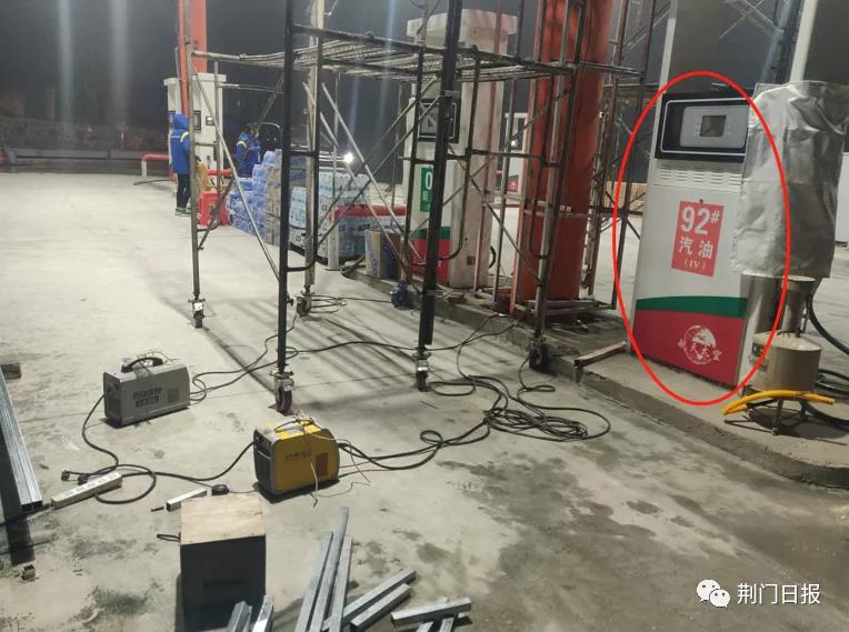 可昨晚(12月15日),在荆门京山宋河镇却发生了这样一幕……92#加油机上方正在进行切割作业,火花飞溅。