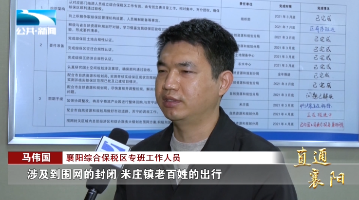 襄阳综合保税区专班工作人员 马伟国:“涉及到围网的封闭、米庄镇老百姓的出行受到非常大影响,综保专班克服难度。一个月的时间内,修建了一条临时便道,满足米庄镇老百姓的出行。”