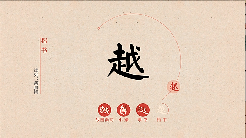 战国秦简中的越是个形声字,左边的走是形符,表明它的含义跟行走有关,右边的戉是声符。 小篆的越跟战国秦简里的越,写法基本一致,线条更加规整、圆润。 隶书跟楷书则进一步符号化了。(主讲人 袁卫华 广西师范大学文学院 副教授) 责任编辑 胡劲