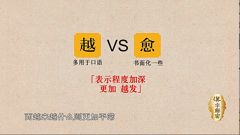 越和愈都可以表示程度加深,有更加、越发的意思,不过它们在整体语言风格上是有差异的。愈来愈更加文雅、书面化一些,而越来越则更加平常,多用于口语。(主讲人 袁卫华 广西师范大学文学院 副教授) 责任编辑 胡劲