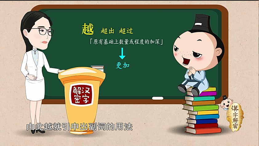 越有超出、超过的意思,这是在原有基础之上数量或程度上的加深,由此越就引申出副词的用法表示更加,越开越什么中的越就是更加的意思。(主讲人 袁卫华 广西师范大学文学院 副教授)