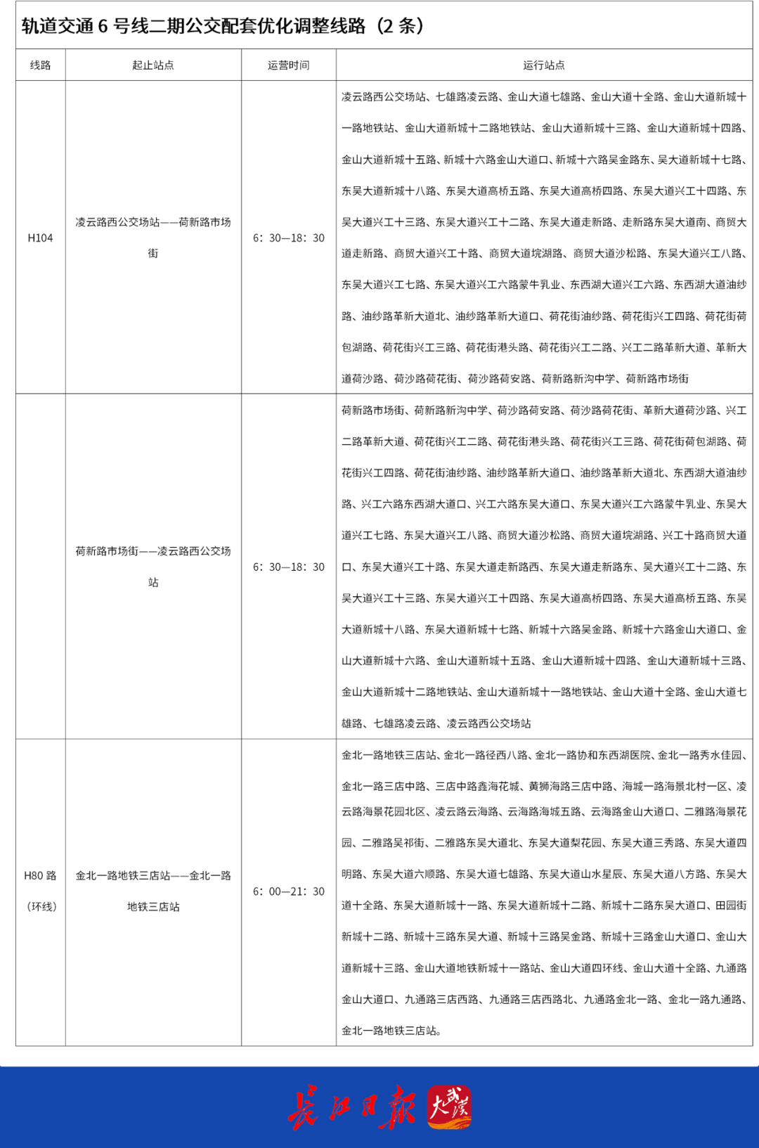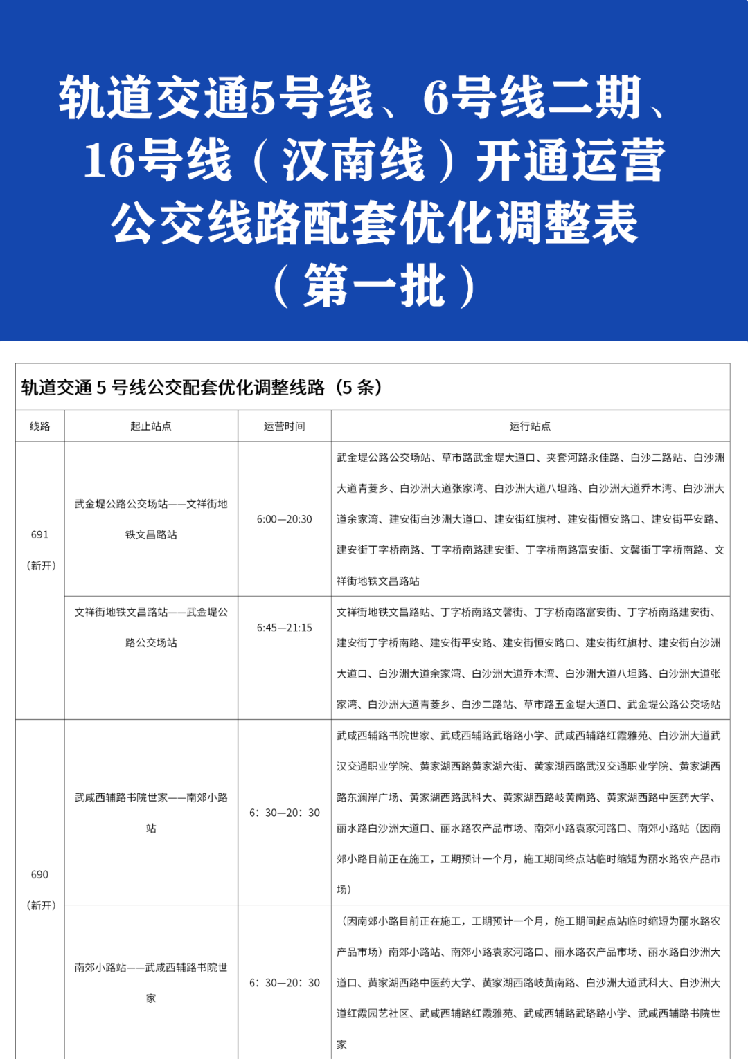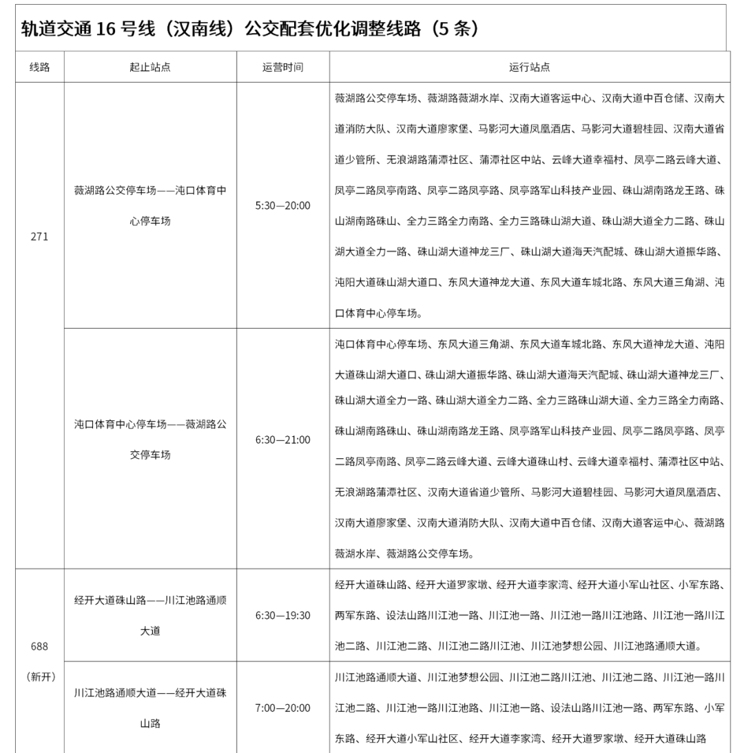 武汉公交第一批优化调整的