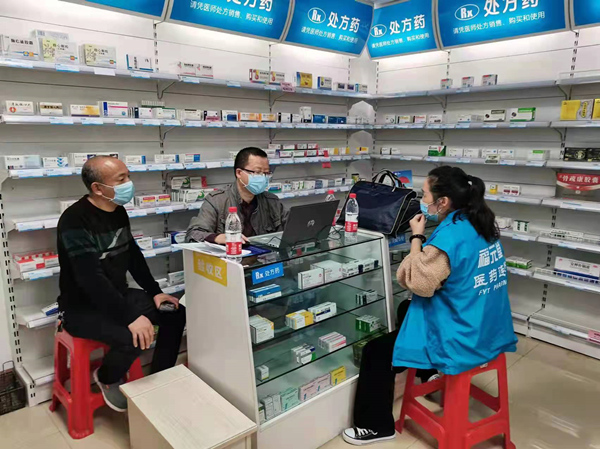 图为潜江市“三假”专项整治组在药店进行“三假”问题现场核查