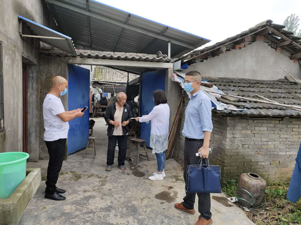图为潜江市纪委监委工作人员联合杨市街道纪委将补偿款送到刘岭村村民手中,并开展“回访”