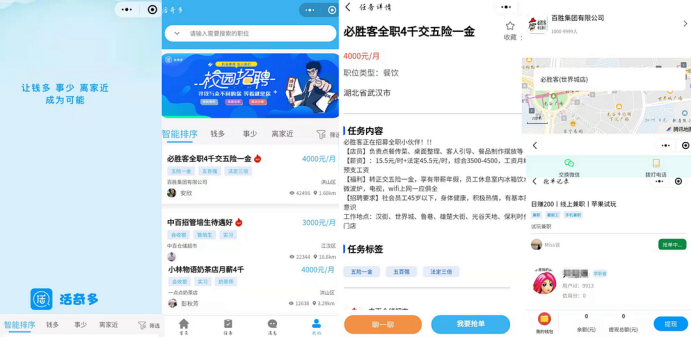 通过活奇多的数字简历库,岗位大数据精准匹配,求职者已经可以实现三天之内快速入职。通过LBS定位,大部分求职者可以实现1km工作。基于平台功能,合同签订、体温上报、考勤打卡、工资发放等全部线上完成,此外,平台正在完善会员积分体系,让灵活就业人员充分的享受获得感。