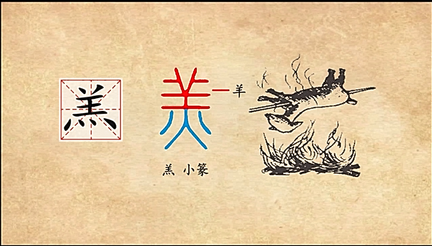 羡慕的是什么呢,羡慕的是珍馐美味。这个羞字,就是手拿着一只羊,一只手能拿起来的羊就是羔羊。这个羔字上面是羊,下面四点是火,就是我们说的烤全羊。手拿着小羊羔去送给人家吃,这叫敬美味。