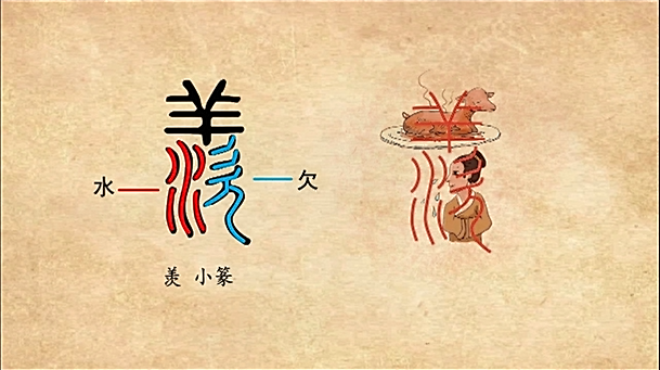 馐字有两个含义,一个珍馐美味的意思,一个是害羞、不好意思的意思。敬美味衍生出害羞的意思,是因为古代打仗,将军和将军对打有一个结果,败方的将军在失败后,一定要拿着烤全羊去给胜方送礼,这是古人的规定。同为将军,失败后拿着烤全羊去孝敬对方,就会觉得羞愧。(主讲人 万献初 武汉大学文学院 教授)