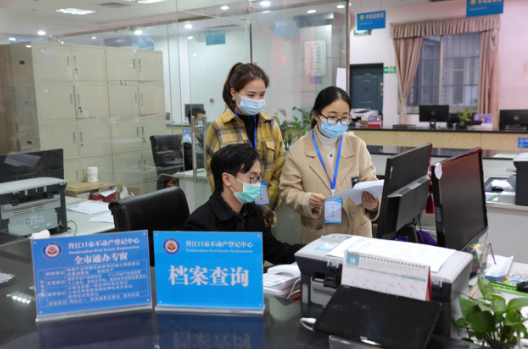 图为丹江口市纪委监委监督检查组在不动产登记中心核实相关问题基础信息