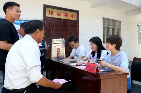 图为竹山县纪检监察干部在城关镇明清村设点接访