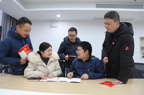 图为点军区纪委监委干部围绕《条例》开展学习讨论
