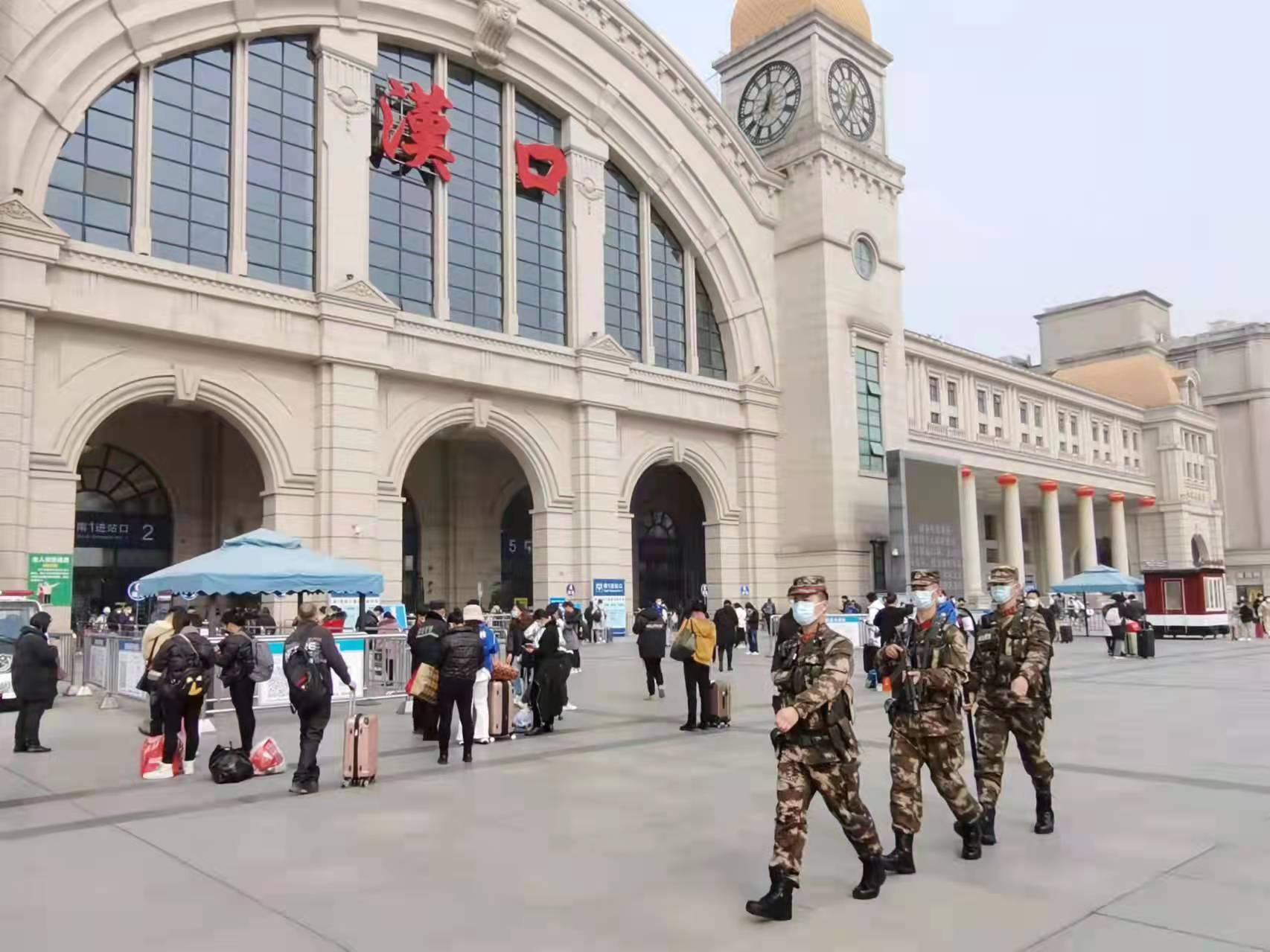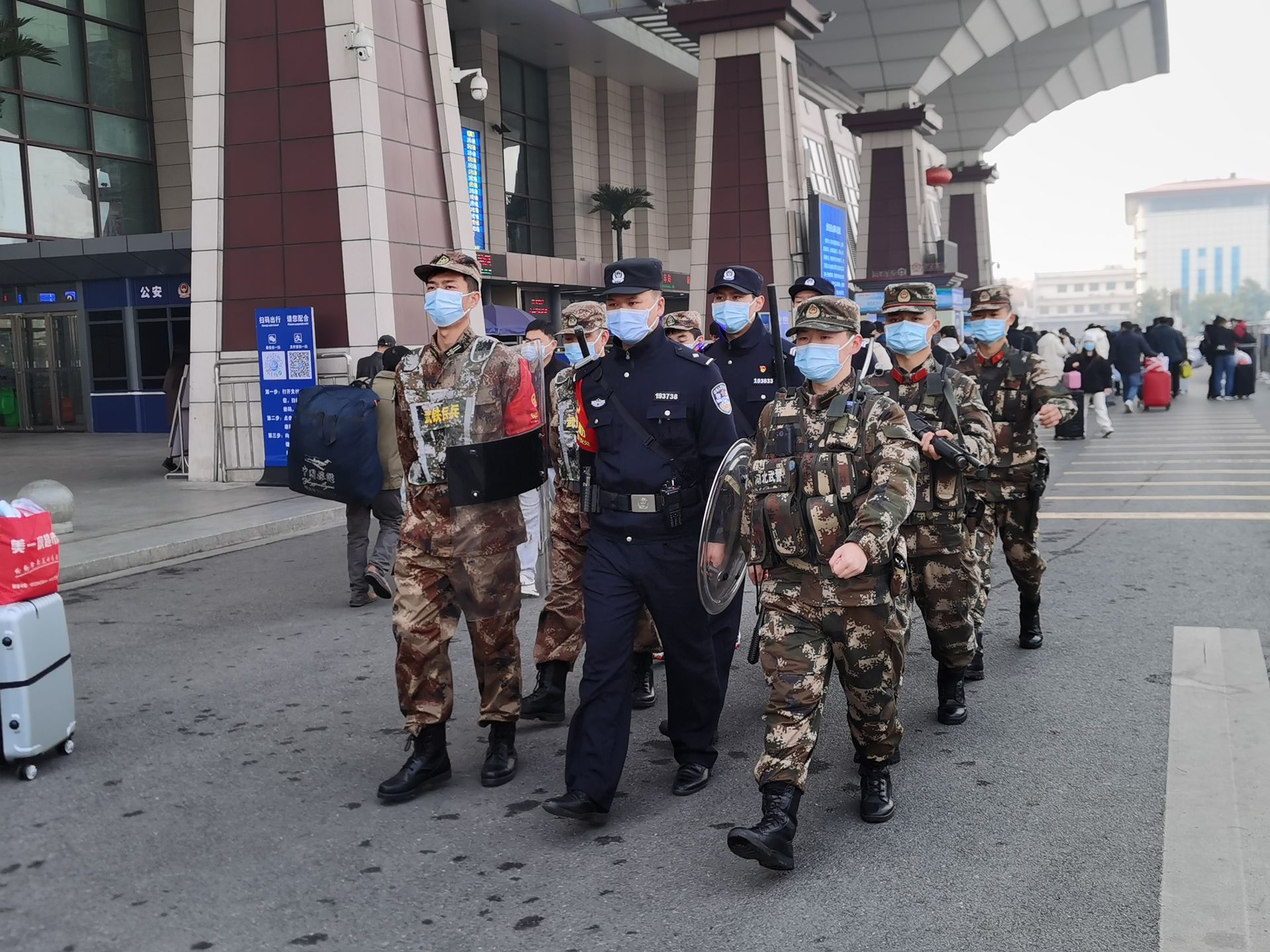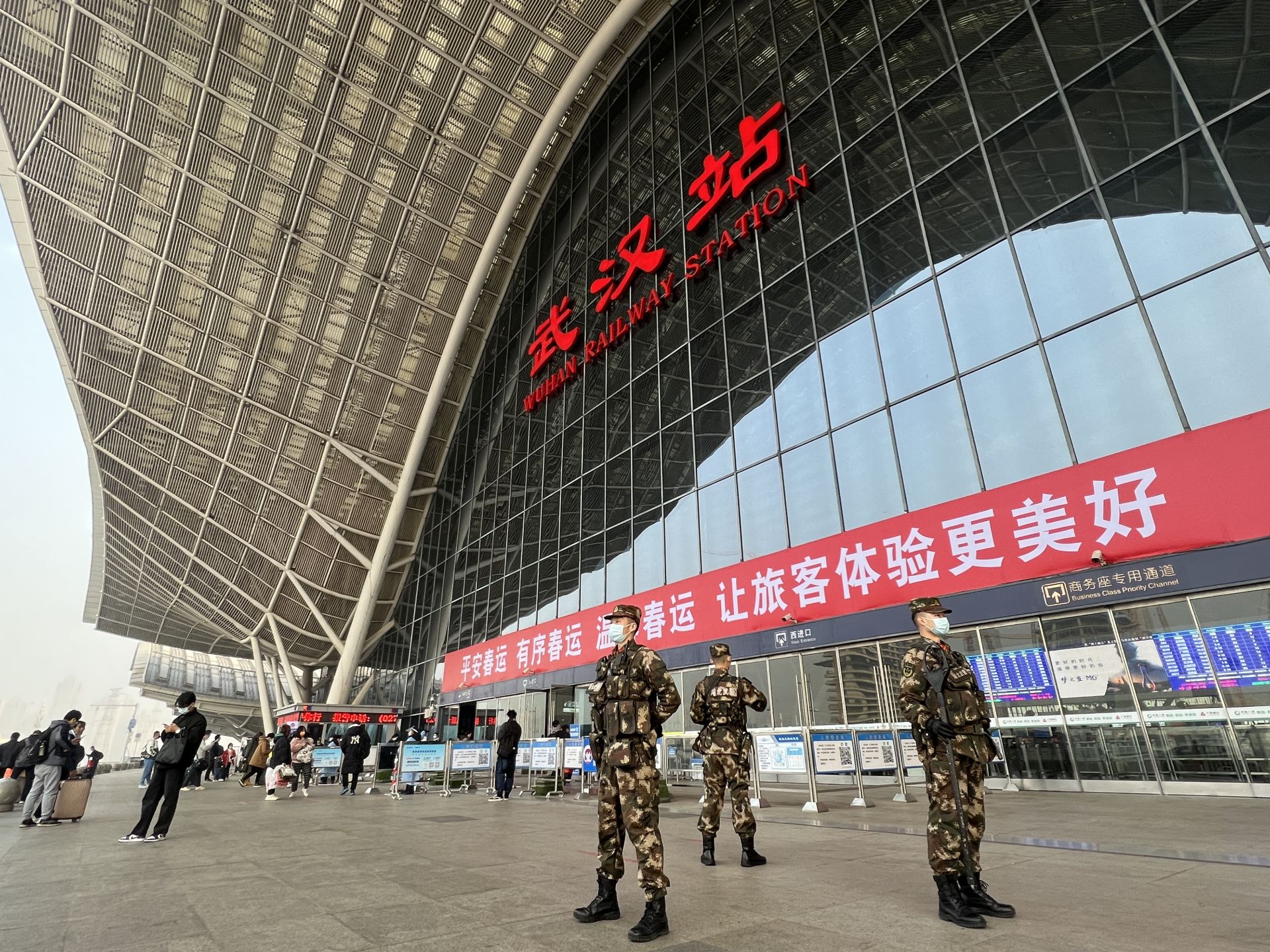 1月17日,春运开启首日,客流量没有大幅度增加,担负武汉三大火车站和机场春运执勤的武警武汉支队巡逻官兵依然认真准备、严密组勤。