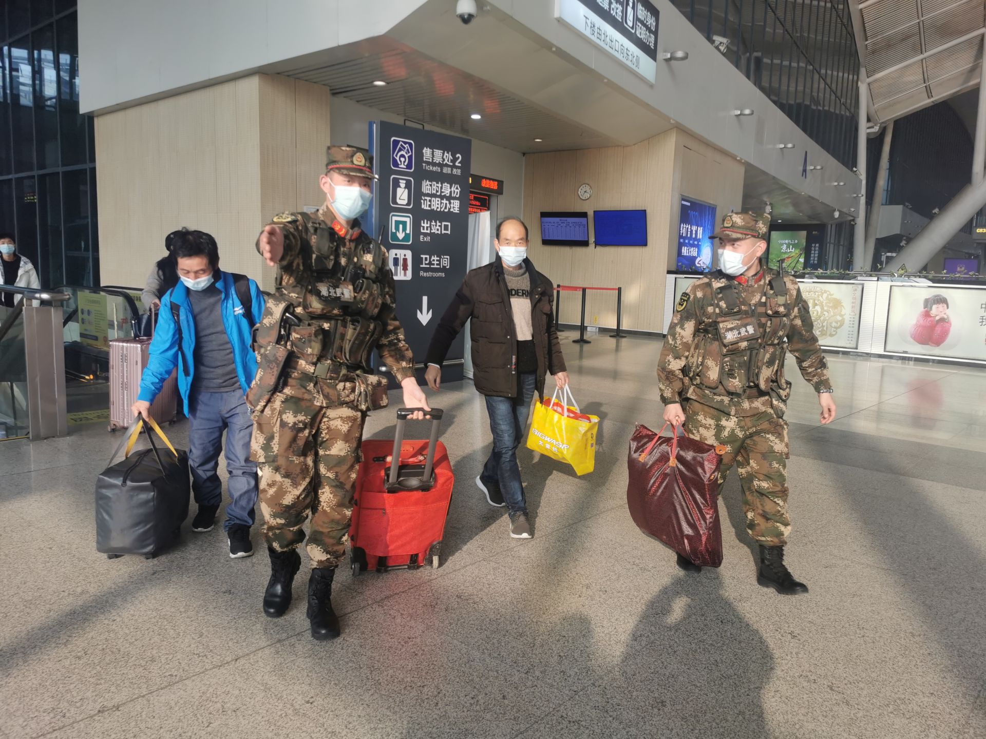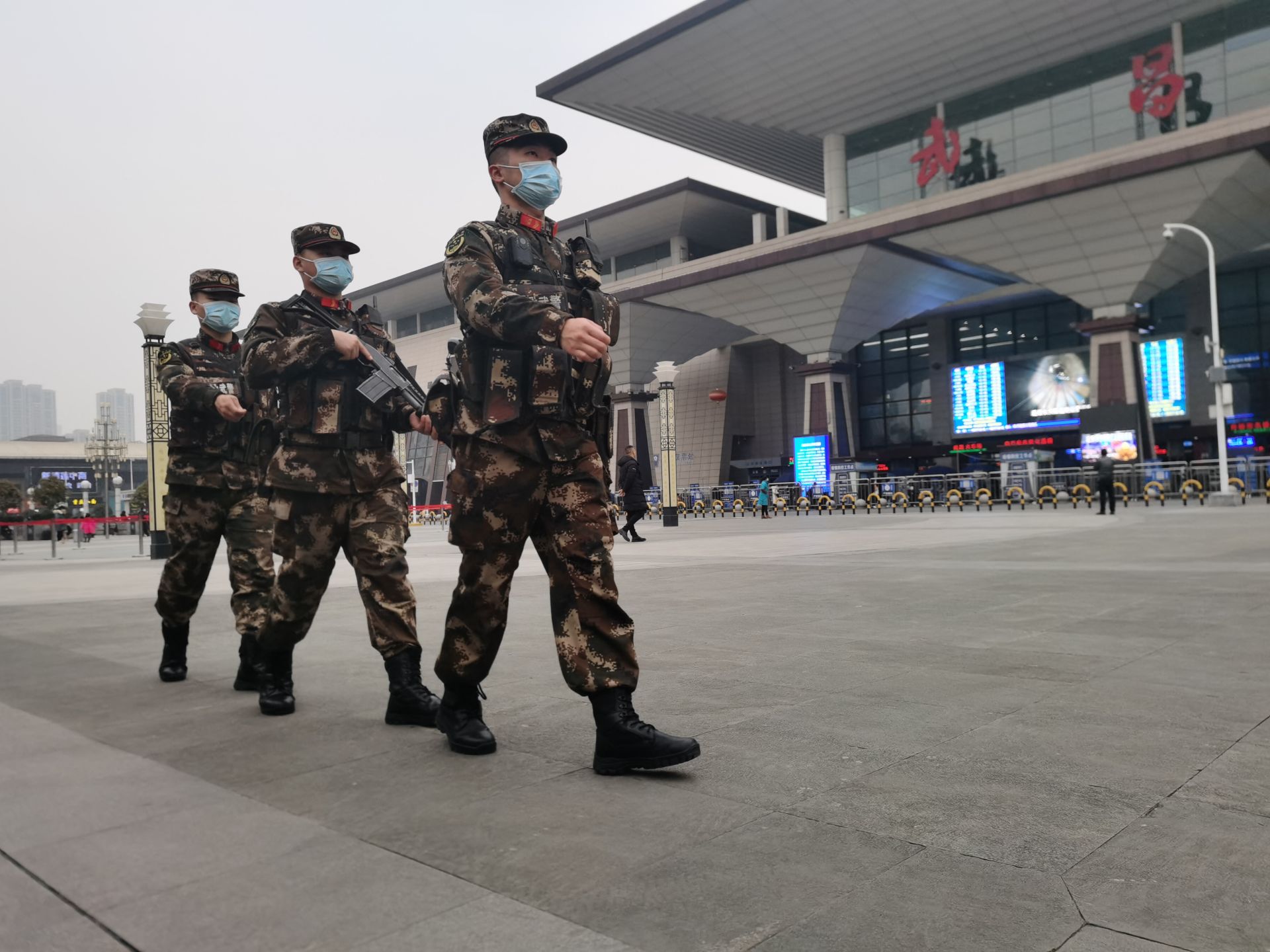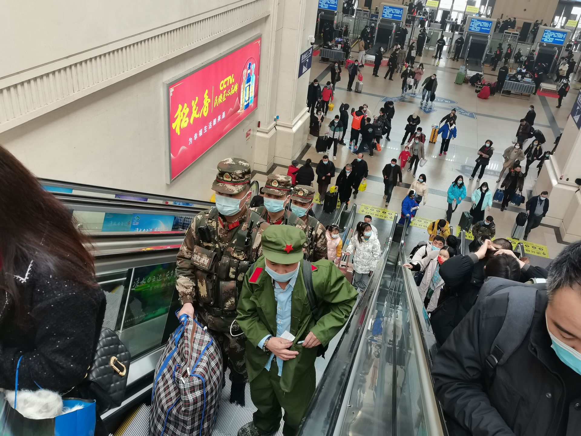 1月17日,春运开启首日,客流量没有大幅度增加,担负武汉三大火车站和机场春运执勤的武警武汉支队巡逻官兵依然认真准备、严密组勤。
