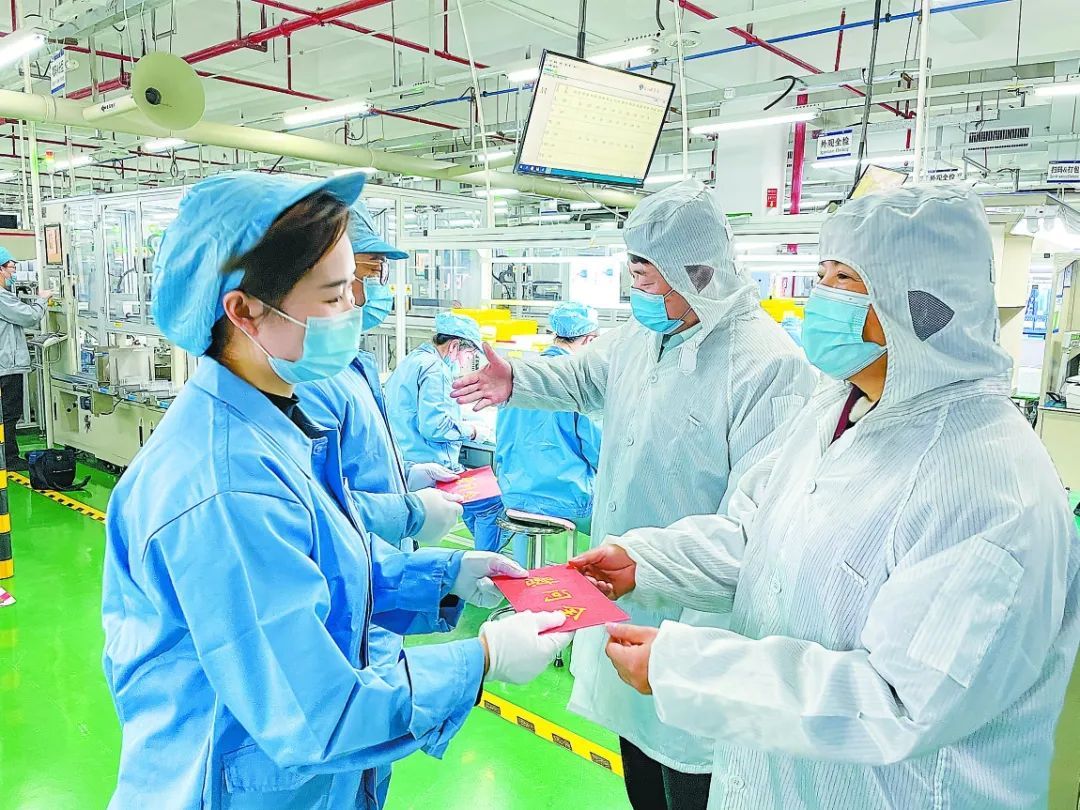 2021年1月,重庆万盛经济技术开发区企业为留在当地过年的员工发放新春红包。渝仁轩 摄