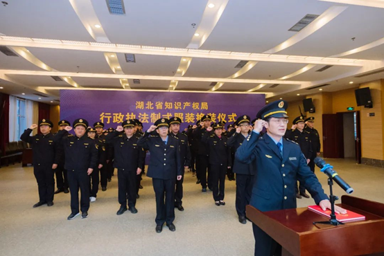 1月14日上午,湖北省知识产权局行政执法制式服装换装仪式隆重举行。省局党组书记、局长周德文参加换装仪式并作动员讲话,党组成员、副局长程浩主持换装仪式,省局全体干部职工参加。