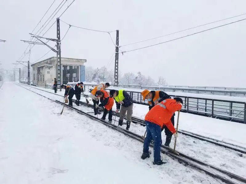 襄阳、宜昌等地车站以雪为令,加强旅客乘降引导。组织人员及时对进出站主要通道和站台上的积雪进行清扫,在客流较大的通道、台阶、站台等关键部位铺设草垫、麻布袋、防滑垫等防滑用品,确保旅客出行安全。襄阳客运段列车工作人员全力做好旅客服务工作,保证餐饮供应和供水、供暖等,确保冰雪天气下旅客平安、有序、温馨出行。宜万铁路沿线长阳、巴东、高坪、建始、利川各车站及时启动应急预案。加强候车室空调设备的调控和热水供应,组织青年志愿服务队做好重点旅客帮扶工作,同时严格执行防疫消杀、扫码测温规定。铁路工务、电务、供电、车辆等专业部门,连夜启动冰雪天气应急处置预案,组织打冰扫雪突击队,上线路除冰雪,检查维护设备,确保线路畅通。