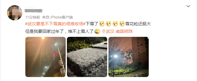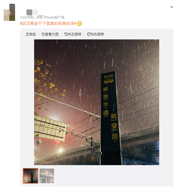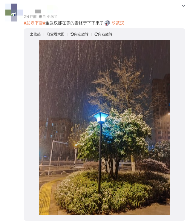 目前汉口的雪花分配得更多,而武昌这边雪花小一点。待气温继续下降,武昌也会有积雪了。待气温继续下降,就会陆续刷白。