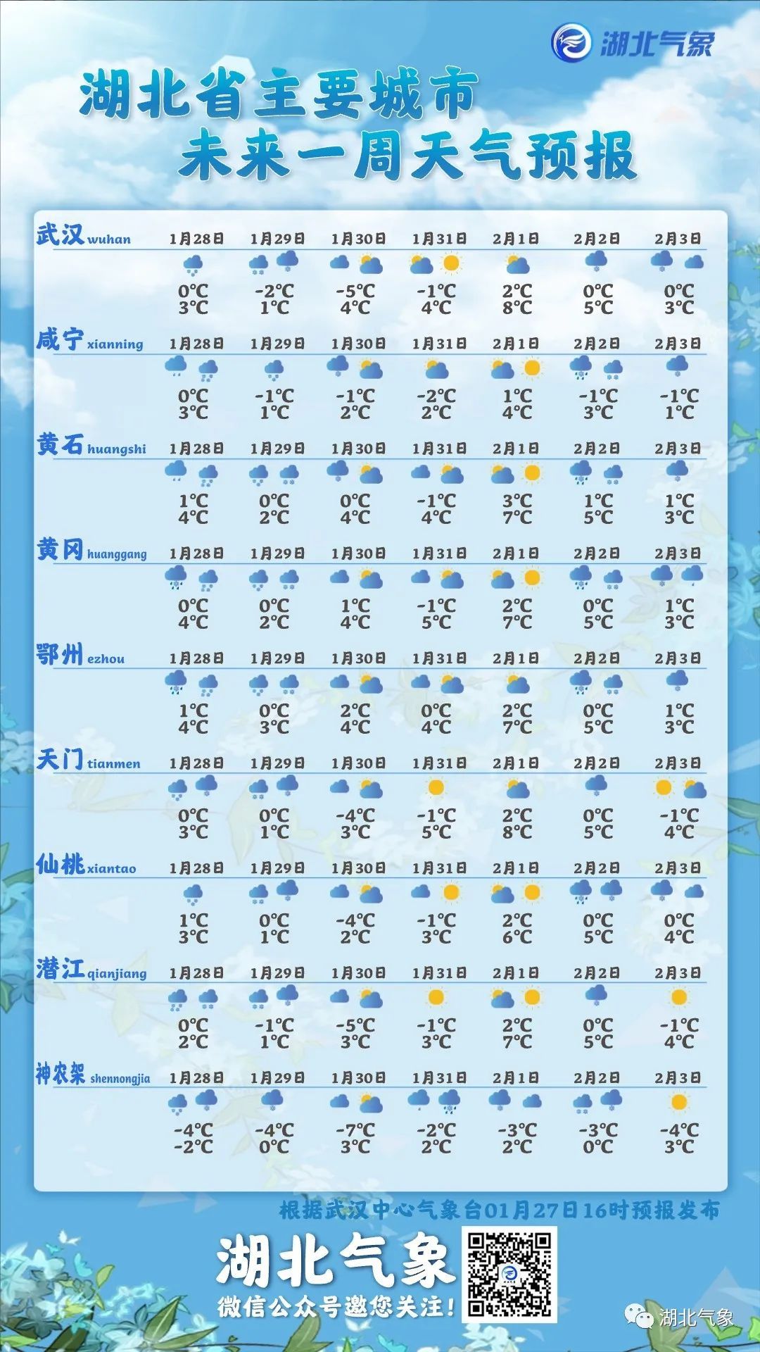 06时46分武汉市气象台再次发布暴雪黄色预警信号:预计今天白天,武汉大部地区将出现大到暴雪,降雪量4毫米以上,请注意防范。十堰市气象台28日07时10分发布暴雪黄色预警信号:预计今天白天,郧西、竹山、竹溪、房县有大到暴雪,请注意防范。