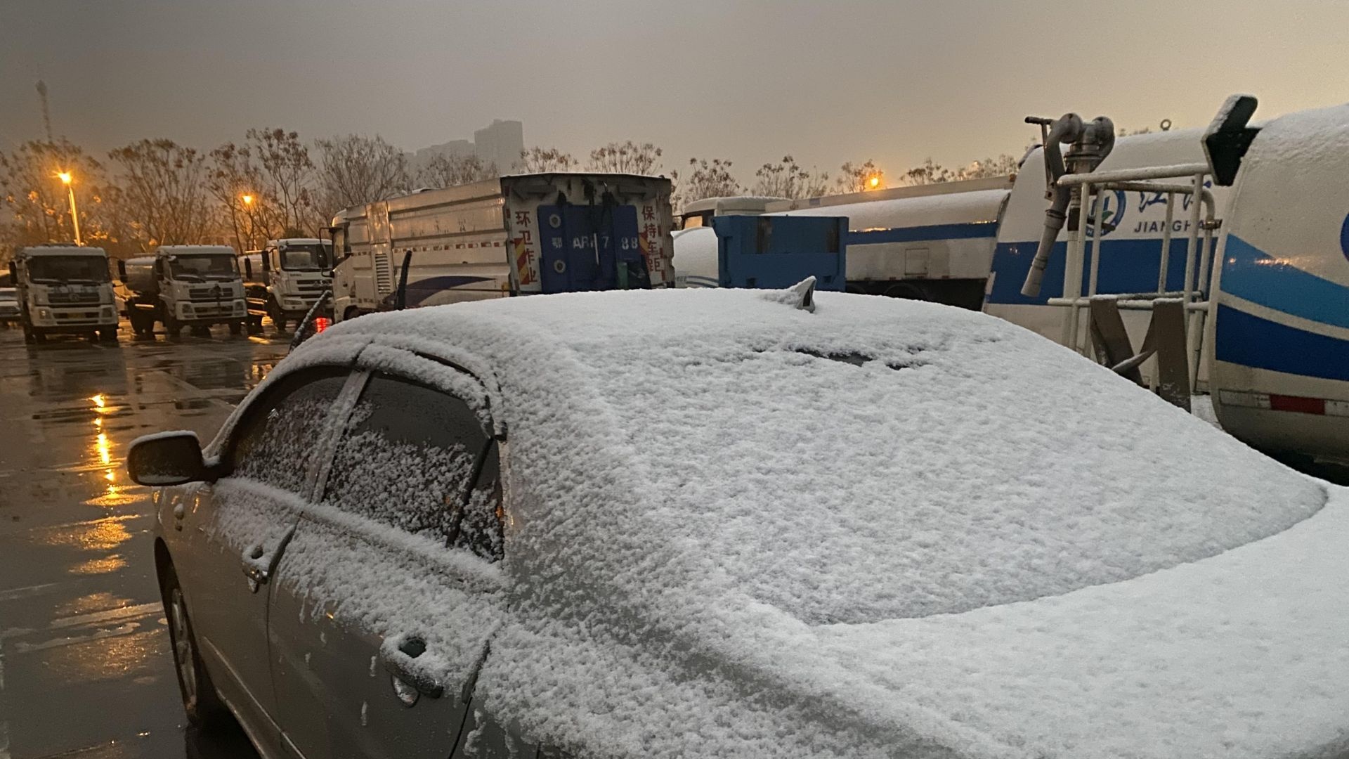 武汉市东西湖区常青花园十四小区车顶有积雪 记者刘飞供图家住东西湖的陈女士早上出门上班就收获了惊喜:“车上覆上一层白雪,特意画了两颗心,哈哈!”