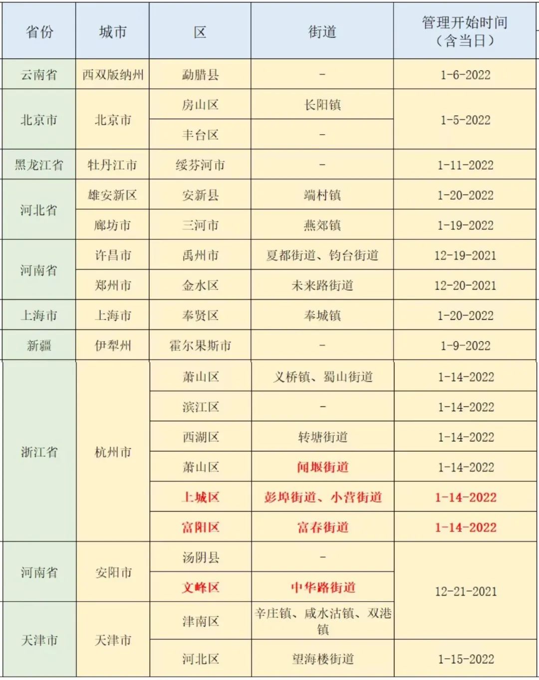 二、鉴于当前的疫情形势,如无必须,建议近期不要前往天津市河北区望海楼街道、浙江省杭州市滨江区、西湖区转塘街道、萧山区蜀山街道、萧山区闻堰街道、富阳区富春街道、上城区彭埠街道和小营街道。