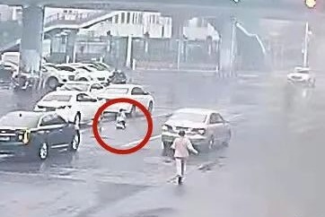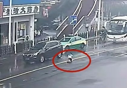 三岁的小鑫和六岁的姐姐走出家门玩耍,他骑着玩具滑轮车脱离了姐姐的视线,滑出小区大门,冲进车水马龙的丹江路,正想与机动车“并驾齐驱”,被热心市民叶女士冲上前一把拉住……