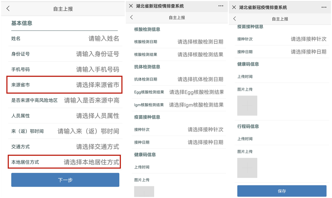 步骤二:点击自主上报,根据申报表中内容,如实填写人员的身份信息、联系方式、来源地、核酸检测等信息,以便属地及时取得联系。