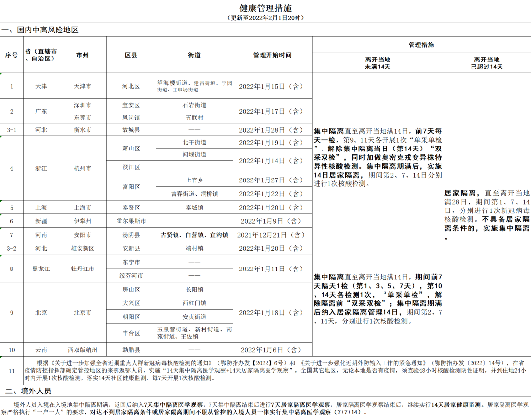 天门最新健康管理措施(截至2月1日20时)