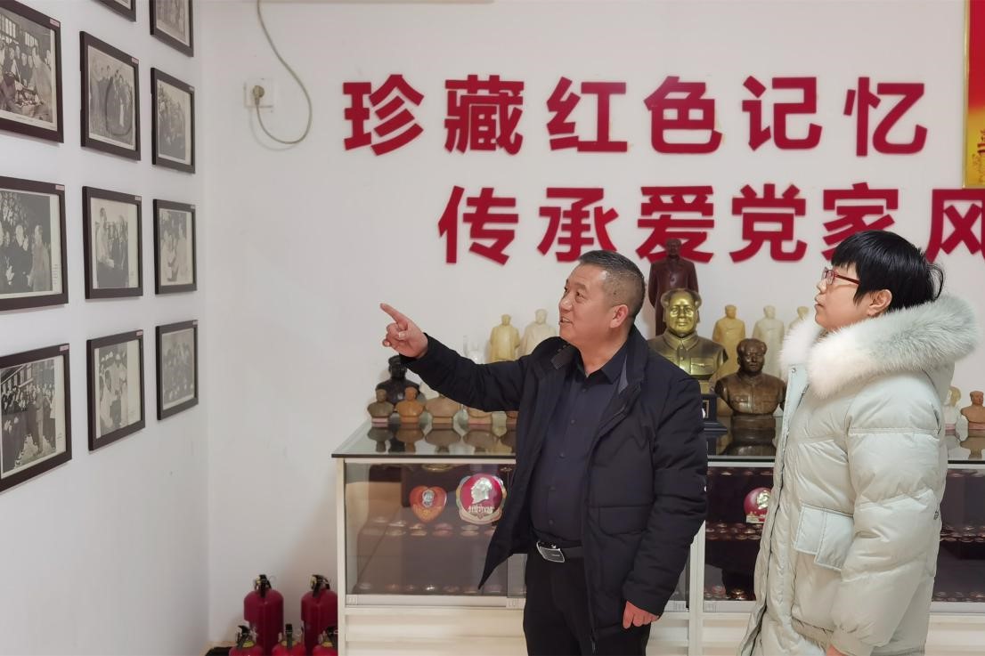 廉以兴家,好家风如传家宝。宜昌市猇亭区新金岭社区王书林笃爱“红色藏品”,他三十年如一日,把“家藏”变成了“爱党家风”基地,2021年王书林家庭获得“荆楚最美家庭”称号。图为王书林在其私人红色收藏馆为纪检监察干部讲述红色藏品故事。