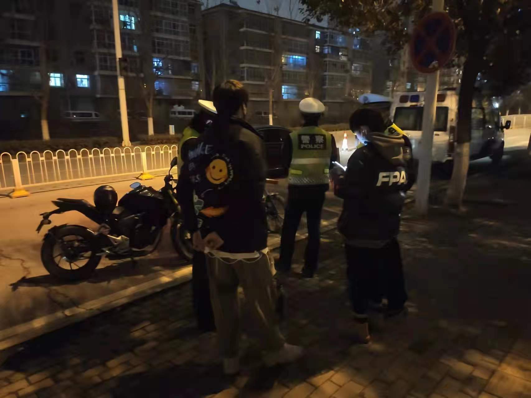 两名驾驶员取下头盔后,交警发现二人面色稚嫩,疑似在校学生。经询问,得知两人均为2007年出生,都未满15岁,还不能考取驾驶证,由于对摩托车十分喜爱,于是从朋友处借来车辆,趁着除夕路上车少骑出来兜风。