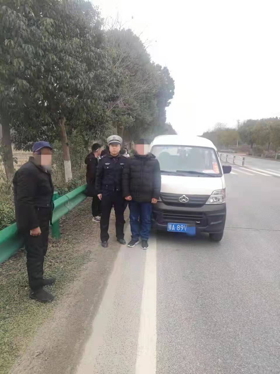 2月1日大年初一,黄陂交警汉警快骑机动队民警带队在G318国道巡逻维护路面秩序时,见一辆车牌号为鄂A89V**面包车内人影憧憧,于是民警依法将该车拦下检查,经查,原本荷载5人的车内实载8人,超员60%,因驾驶人潘某驾驶营运客车以外的其他载客汽车载人超过核定人数20%以上的违法行为,民警按照《道路交通安全法》相关规定,对潘某处以罚款200元,记6分的处罚,同时,民警帮助超员的3人转乘公交车。
