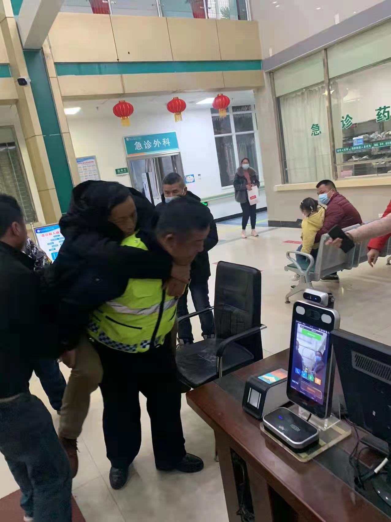 到达医院后,辅警李先明又帮忙背起患者跑向医院急诊室,彭鹏几人在协助家属办理了相关手续后,这才返回木兰山继续开展工作。
