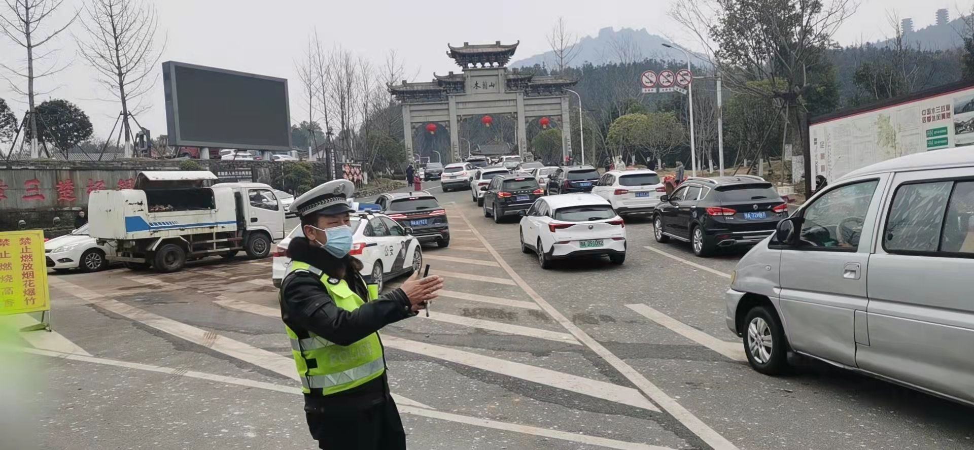 2月5日,大年初五迎财神,数以万计的市民登临木兰山烧香拜财神,黄陂交警三中队为维护木兰山周边道路秩序,全队队员放弃休假,加强木兰山各重点路口路段警力值守,引导车辆有序通行。