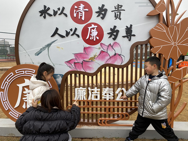 江夏区法泗街道的怡山湾荷韵广场廉政公园建成亮相,廉政石刻与公园环境相得益彰,为廉政文化宣传融入了新活力。该街道大路村群众来到廉政公园游玩参观,让孩子在游玩之余感受廉洁文化熏陶。