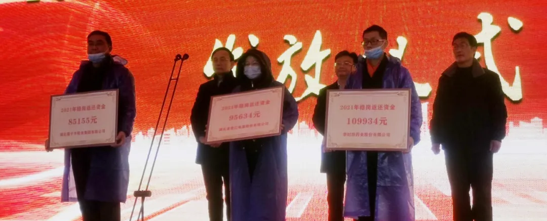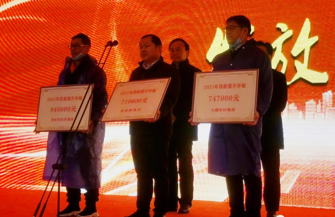 启动仪式上,蕲春县人社局党组副书记、副局长王楚乔为蕲春县翁堑传统手工米粉厂等三家企业颁发扶贫车间吸纳奖补,江云生为湖北孺子牛鞋业集团有限公司等三家企业颁发稳岗返还补贴奖,蕲春县政府副县长周志刚为燕加隆集团等三家企业颁发技能提升补贴奖并合影留念。