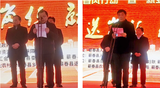 蕲春县优秀民营企业代表湖北李时珍医药集团孙立伟总经理和湖北燕加隆集团罗明总经理先后发言,他们表示,历年来“春风行动”为本地企业输送了一批优秀员工和技术骨干,为企业发展壮大作出了积极贡献,他们向广大应聘者发出求职邀请,以最大的诚意欢迎他们加入。
