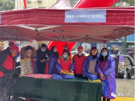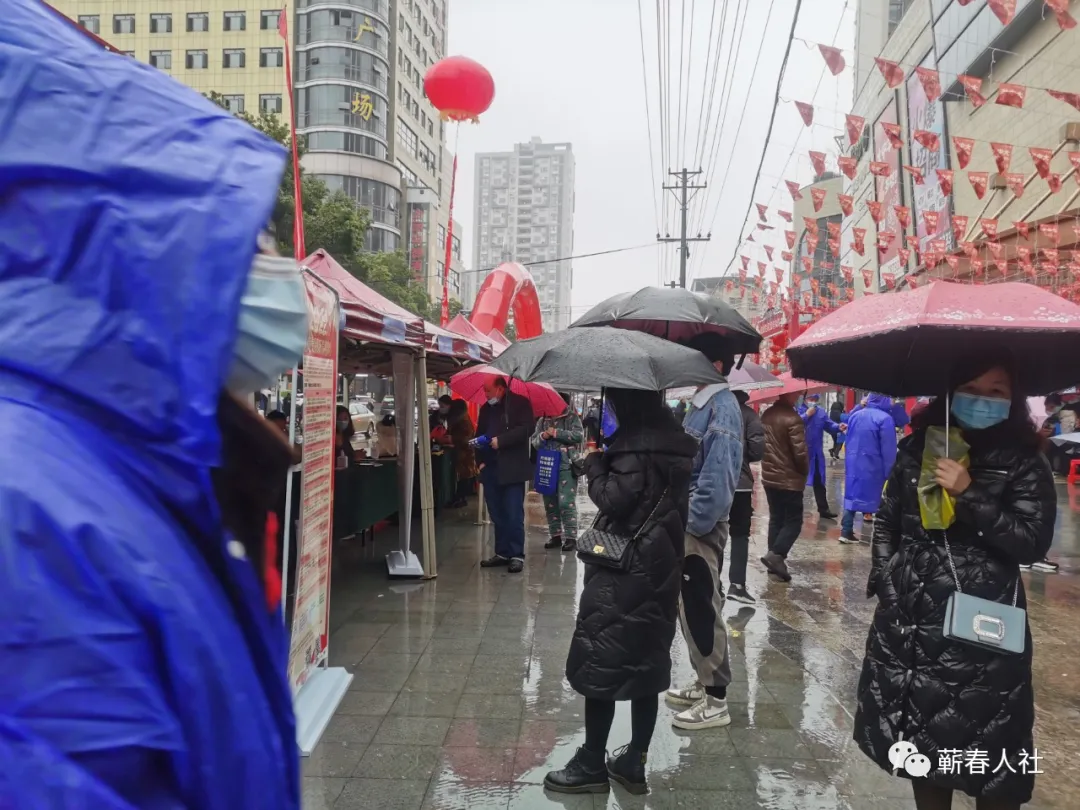 活动现场人头攒动,热闹非凡。在雨中,蕲春县人社局文明实践站志愿者们积极引导求职者维护现场秩序、发放政策宣传手册、介绍招聘信息,为求职者提供帮助。