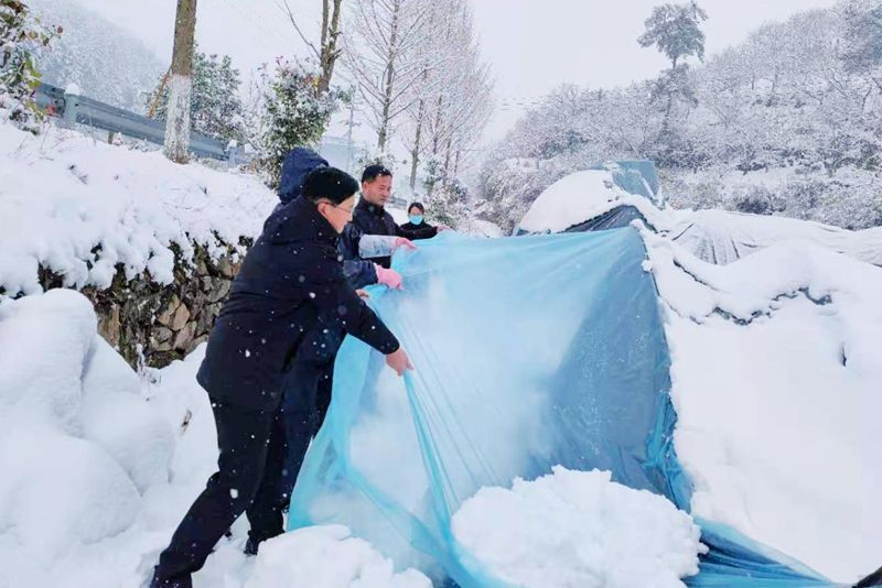 一枝一叶总关情。2月7日,罗田县胜利镇黄家铺村的羊肚菌基地大棚被大雪压弯,镇纪委书记范运来到受灾现场参与并带领村干部和党员清除大棚上厚厚的积雪,帮助农户开展生产自救。(黄冈市纪委监委)