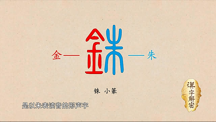 小篆中的铢左边是金,右边是朱,是以朱表读音的形声字。
