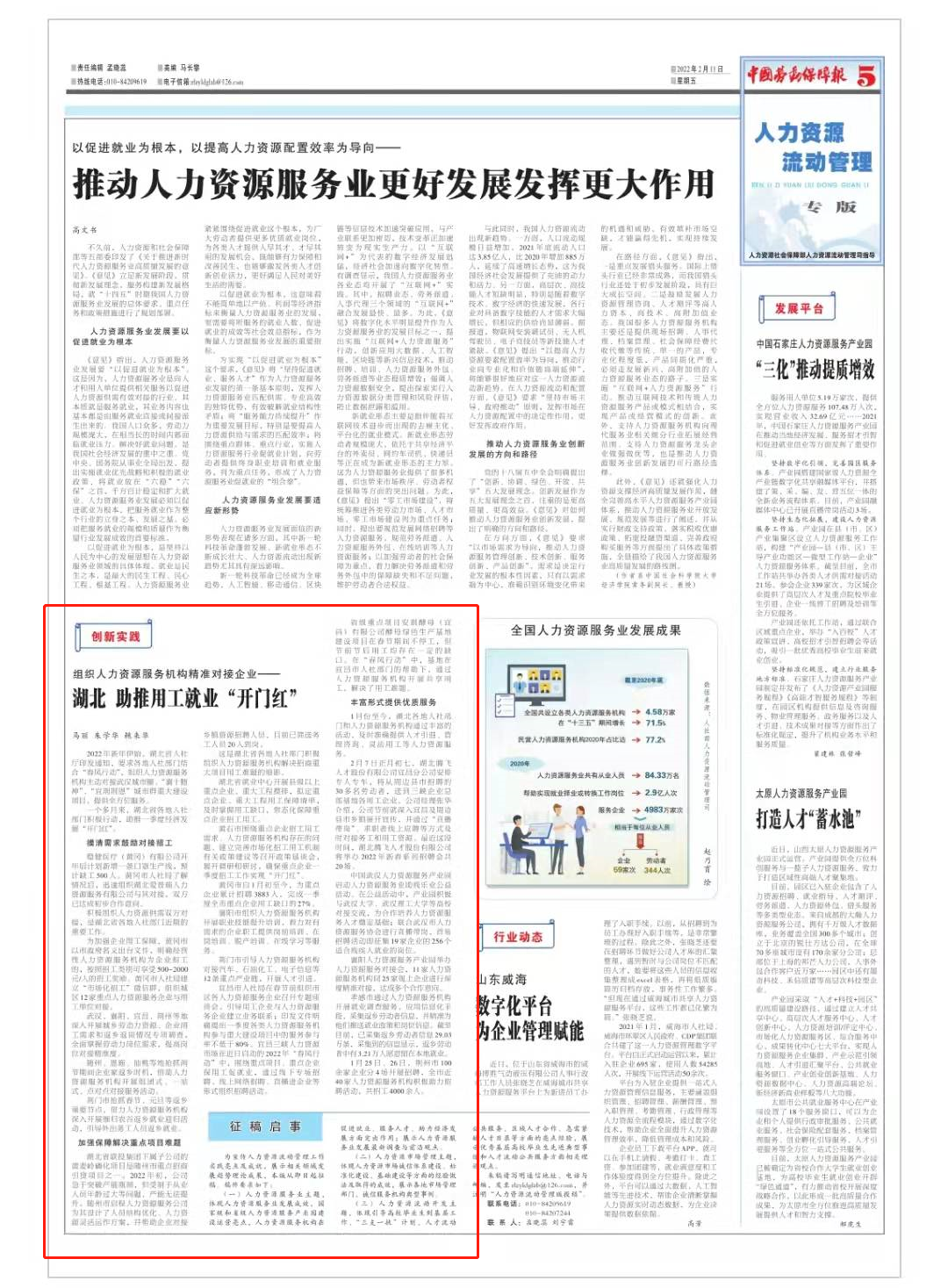 1月份至今,湖北各地人社部门和人力资源服务机构通过丰富的活动,及时准确提供人才引进、管理咨询、灵活用工等人力资源服务。