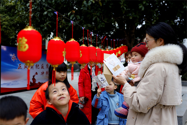 鹤峰县精心组织“猜灯谜·庆元宵”文化活动,一个个精巧的灯笼下面挂上谜语,老少群众聚在一起,猜廉政灯谜,过元宵佳节。(恩施州纪委监委)