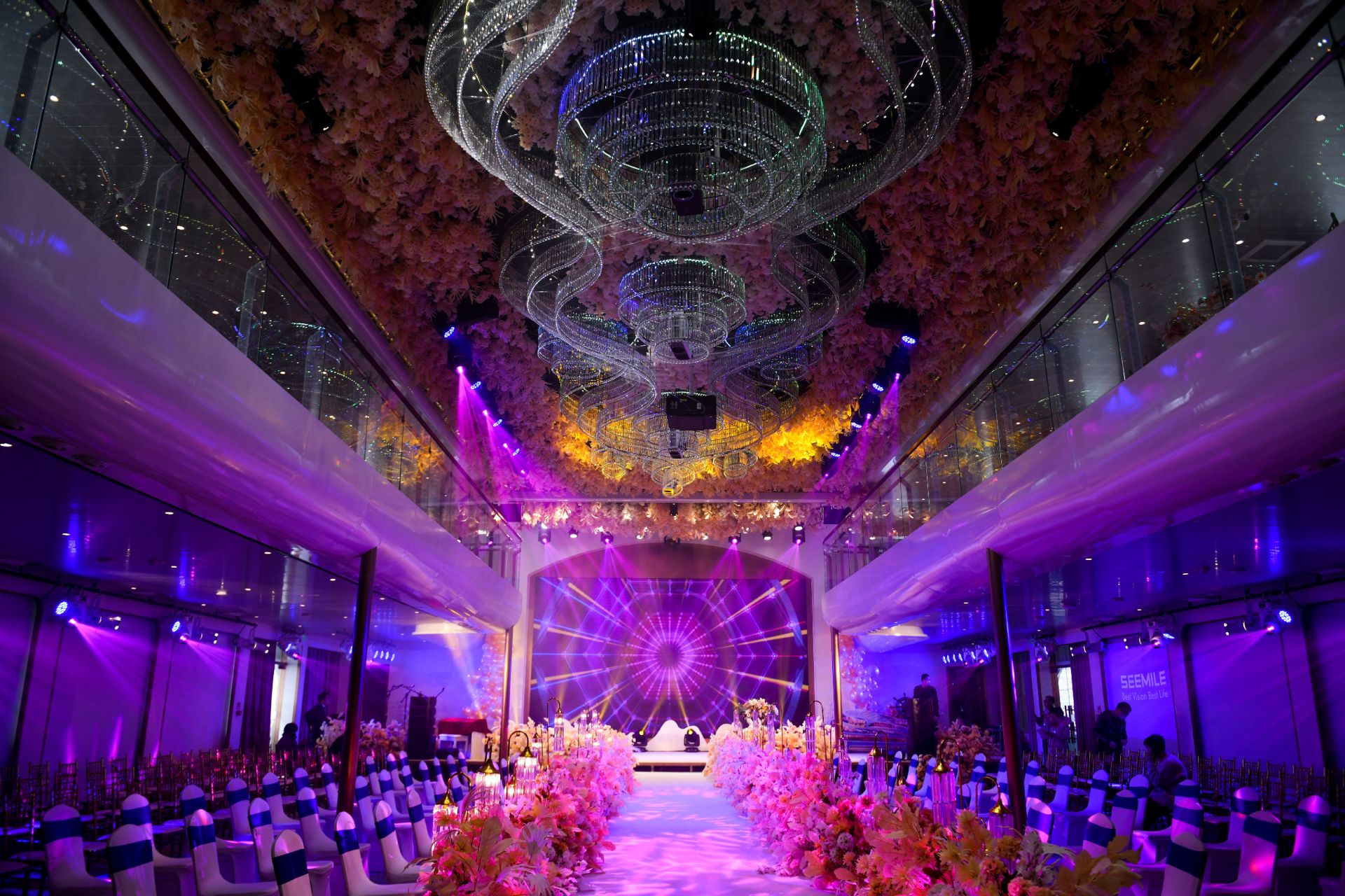 一层主甲板设有583㎡无柱多功能高端宴会大厅,华美长梯和7.1m层高中空天井中庭,可满足婚礼庆典、商务庆典、主题活动等需求。
