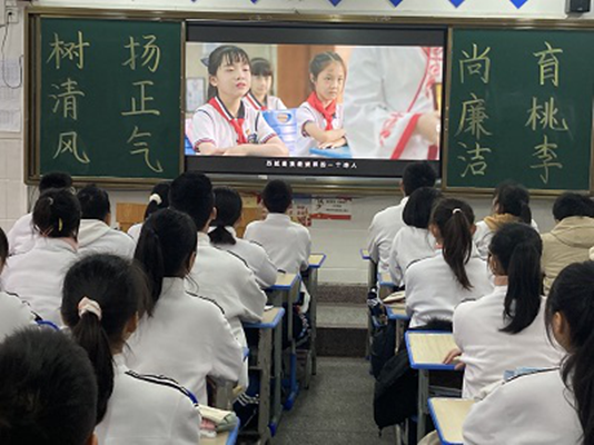 晴川初级中学组织学生观看“清廉向未来”短片,开展读后感分享活动,将“清廉”概念植入学生心底。