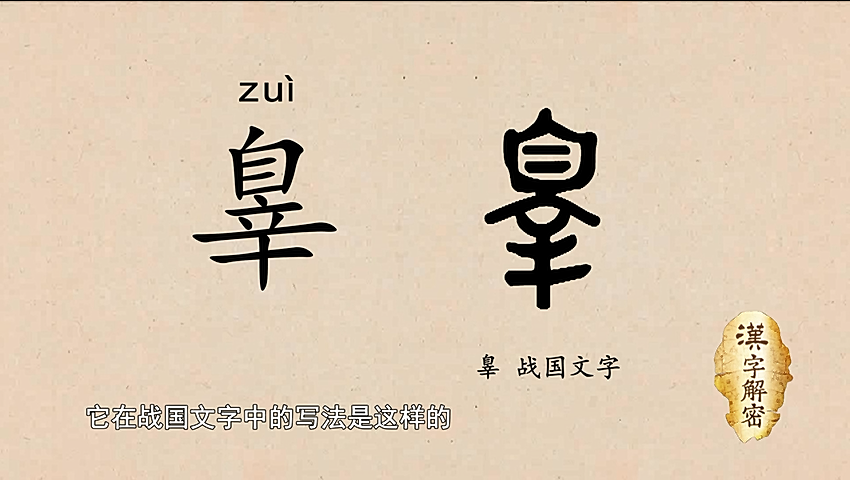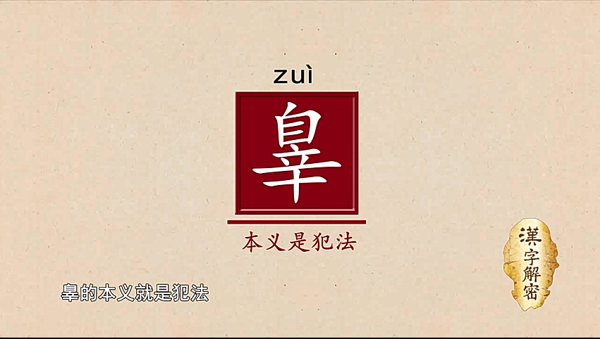 辠的本义就是犯法,用人犯了法后所受刑时候的痛苦的样子来表示。(主讲人 孙玉文 北京大学中文系 教授)